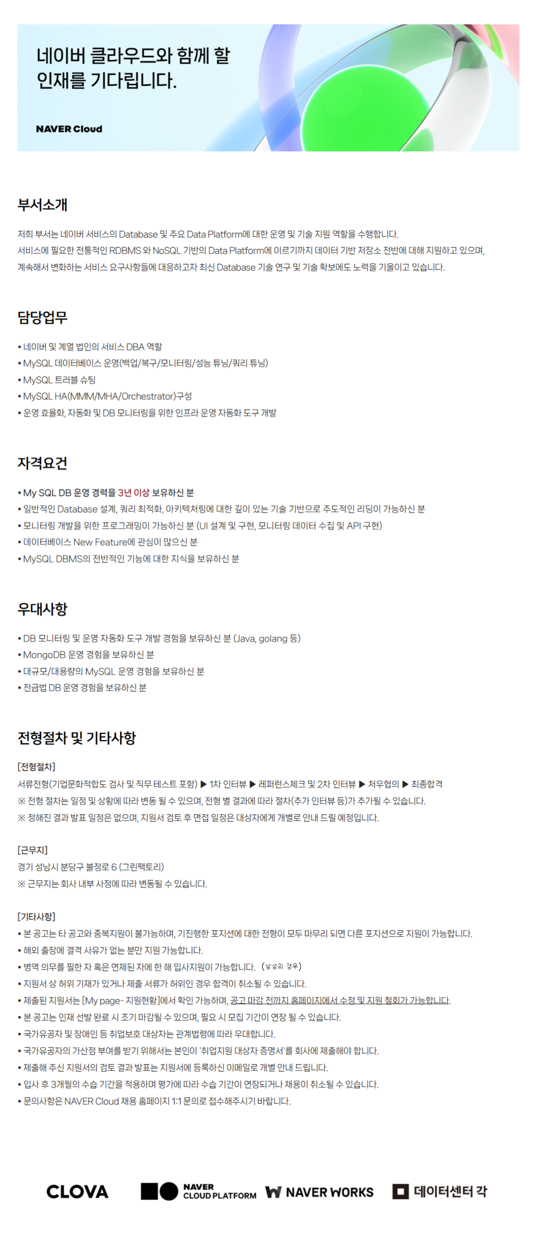 [NAVER Cloud] Data Platform MySQL DBA (°æ·Â)