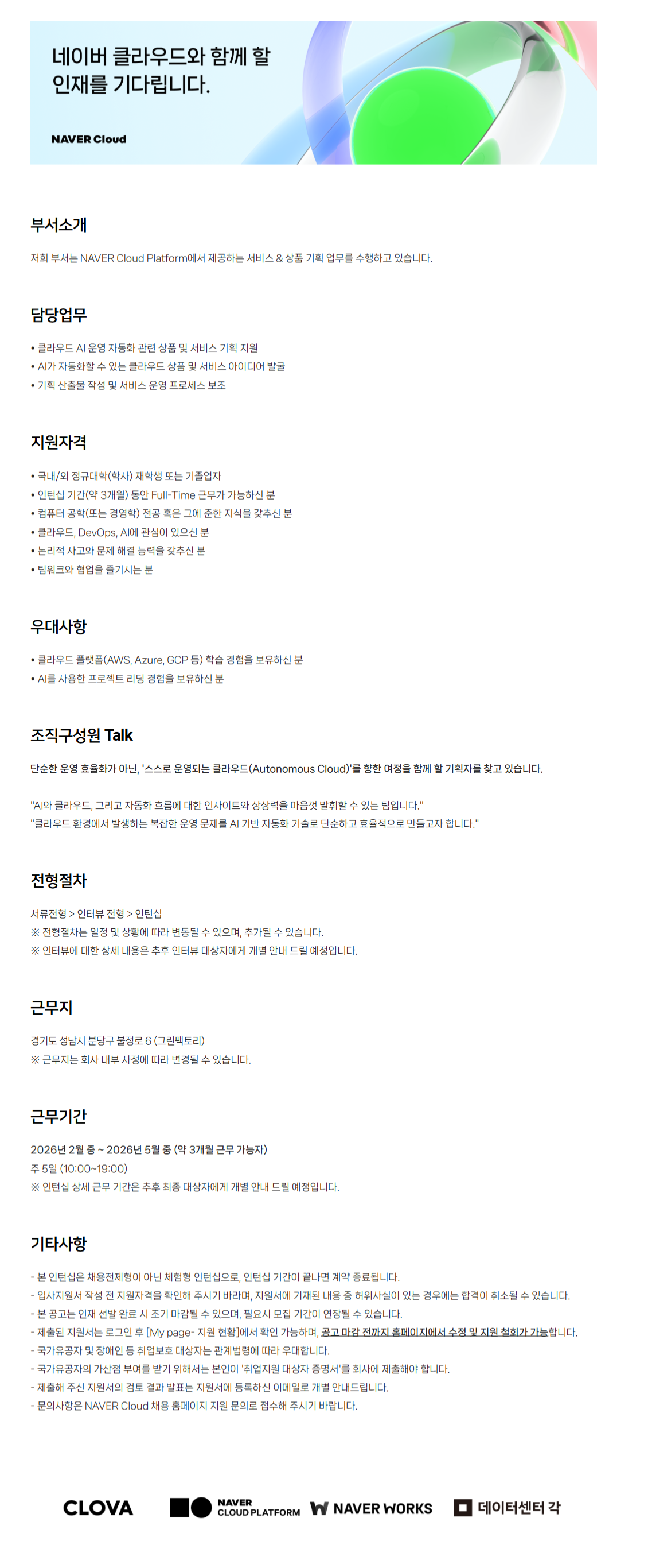 [NAVER Cloud] Ŭ¶ó¿ìµå AI ¿î¿µ ¹× ÀÚµ¿È ¼ºñ½º ±âȹ (üÇèÇü ÀÎÅÏ)