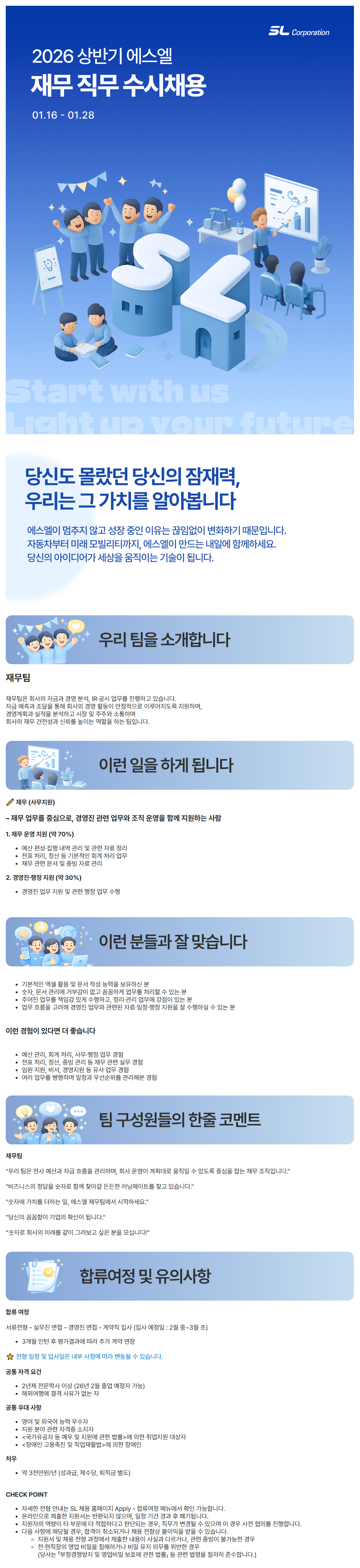 ✏️ À繫 (»ç¹«Áö¿ø) – À繫 ¾÷¹«¸¦ Áß½ÉÀ¸·Î, °æ¿µÁø °ü·Ã ¾÷¹«¿Í Á¶Á÷ ¿î¿µÀ» ÇÔ²² Áö¿øÇÏ´Â »ç¶÷ 1. À繫 ¿î¿µ Áö¿ø (¾à 70%) ¿¹»ê Æí¼º¡¤ÁýÇà ³»¿ª °ü¸® ¹× °ü·Ã ÀÚ·á Á¤¸® ÀüÇ¥ ó¸®, Á¤»ê µî ±âº»ÀûÀΠȸ°è ó¸® ¾÷¹« À繫 °ü·Ã ¹®¼­ ¹× Áõºù ÀÚ·á °ü¸® 2. °æ¿µÁø¡¤ÇàÁ¤ Áö¿ø (¾à 30%) °æ¿µÁø ¾÷¹« Áö¿ø ¹× °ü·Ã ÇàÁ¤ ¾÷¹« ¼öÇà