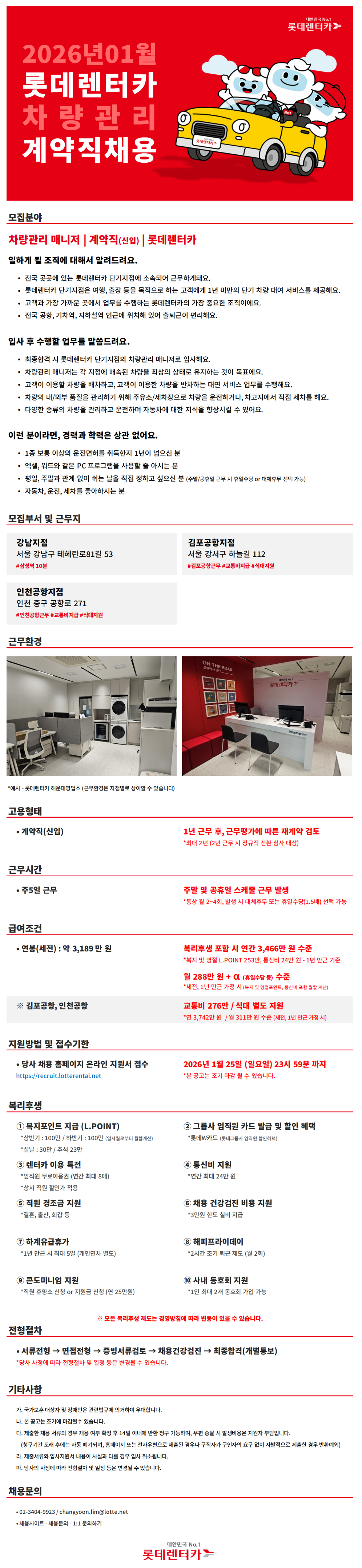 26³â 1¿ù °è¾àÁ÷(½ÅÀÔ) - Â÷·®°ü¸® (°³²,±èÆ÷°øÇ×,ÀÎõ°øÇ×)