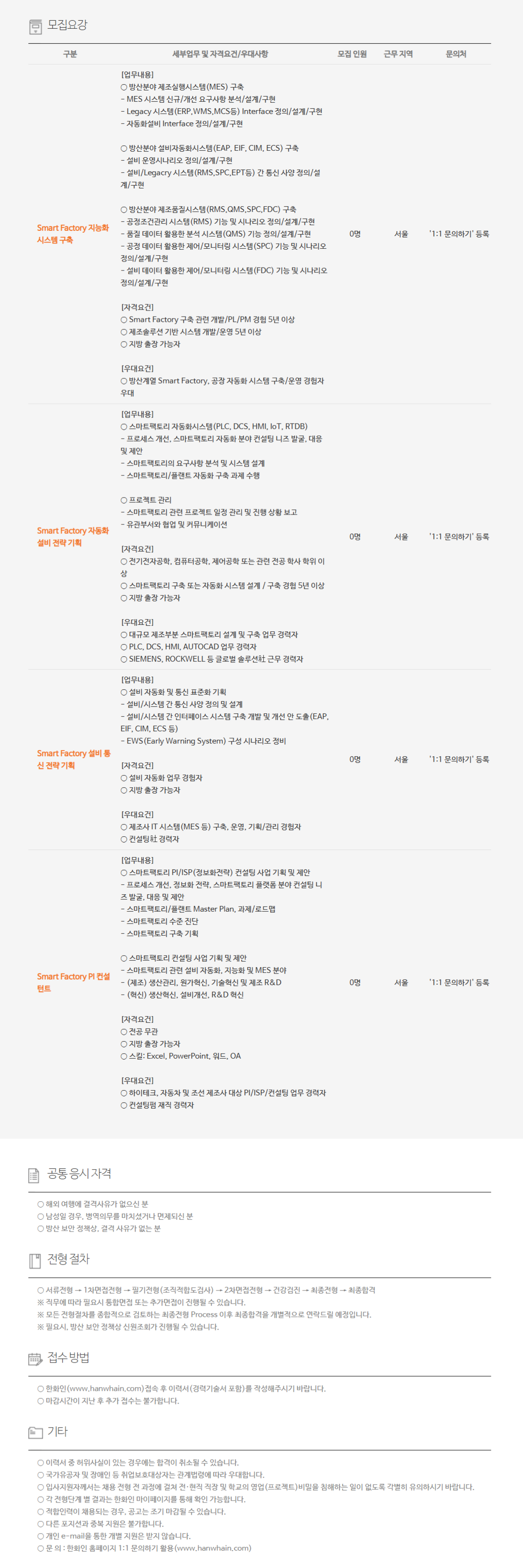 ¡Û ¹æ»ê°è¿ Smart Factory, °øÀå ÀÚµ¿È ½Ã½ºÅÛ ±¸Ãà/¿î¿µ °æÇèÀÚ ¿ì´ë 0¸í ¼¿ï '1:1 ¹®ÀÇÇϱâ' µî·Ï