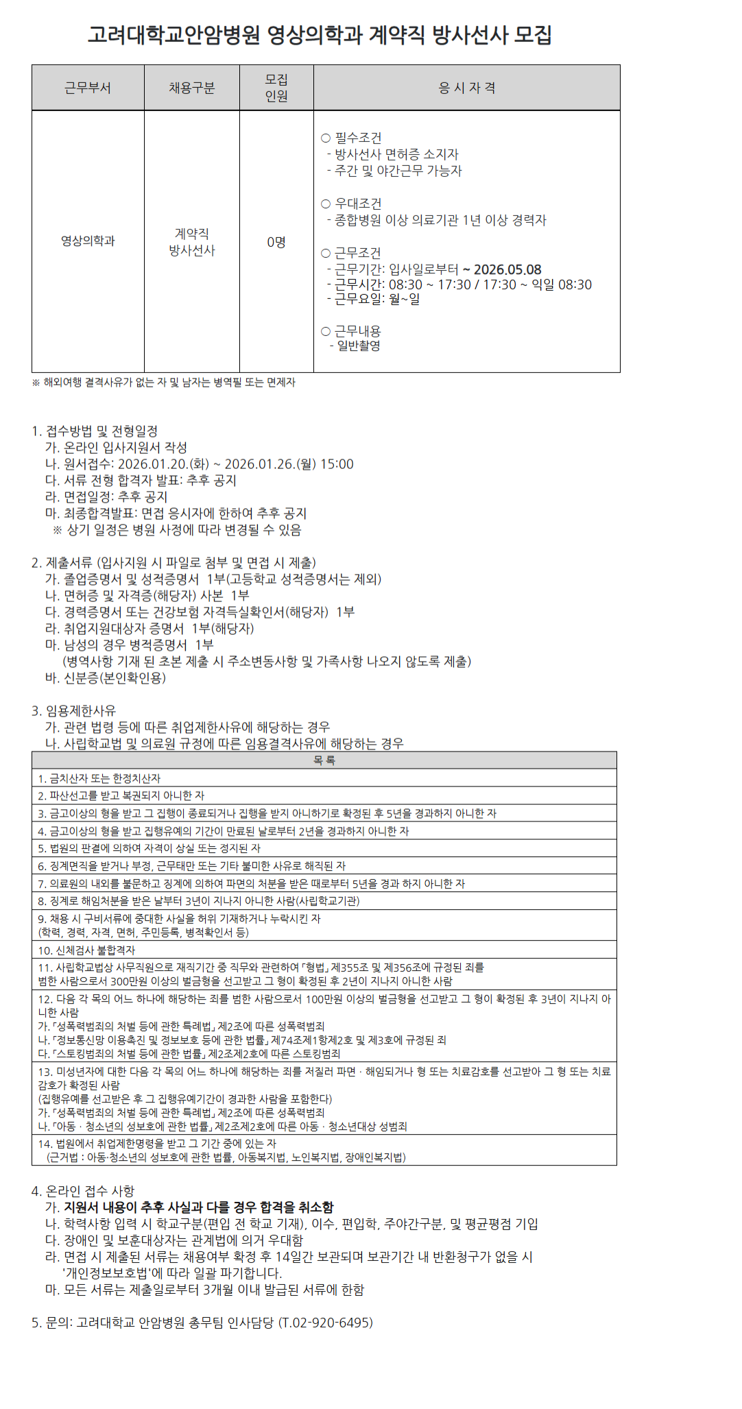 [¾È¾Ïº´¿ø 25-265]¿µ»óÀÇÇаú °è¾àÁ÷ ¹æ»ç¼±»ç ¸ðÁý(´ëüÀηÂ)