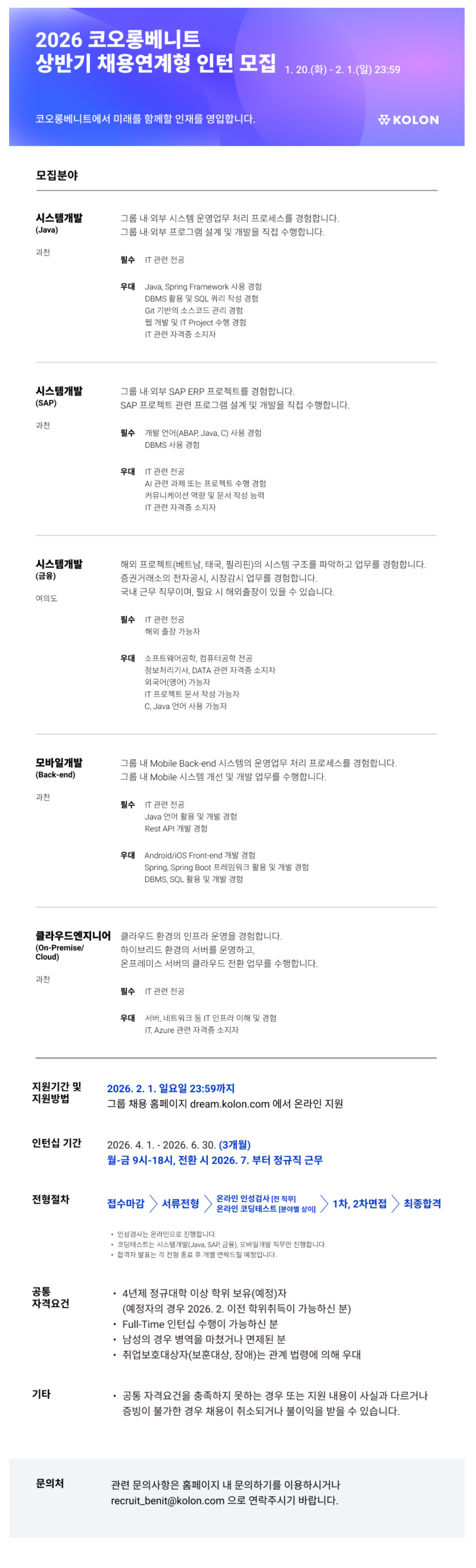 2026³â »ó¹Ý±â ÄÚ¿À·Õº£´ÏÆ® ä¿ë¿¬°èÇü ÀÎÅÏ ¸ðÁý