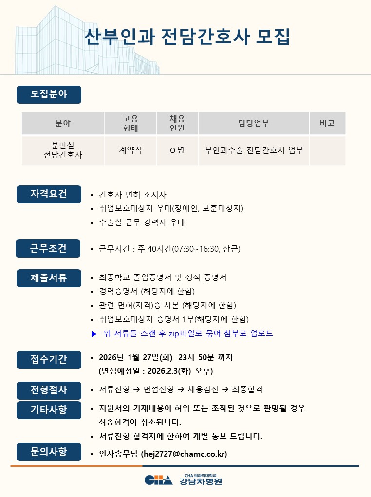 [°³²Â÷º´¿ø] »êºÎÀΰú Àü´ã°£È£»ç ¸ðÁý