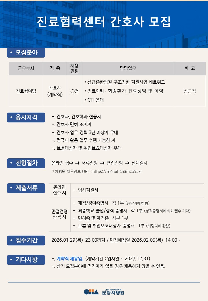 [ºÐ´çÂ÷º´¿ø] Áø·áÇù·Â¼¾ÅÍ °£È£»ç ¸ðÁý