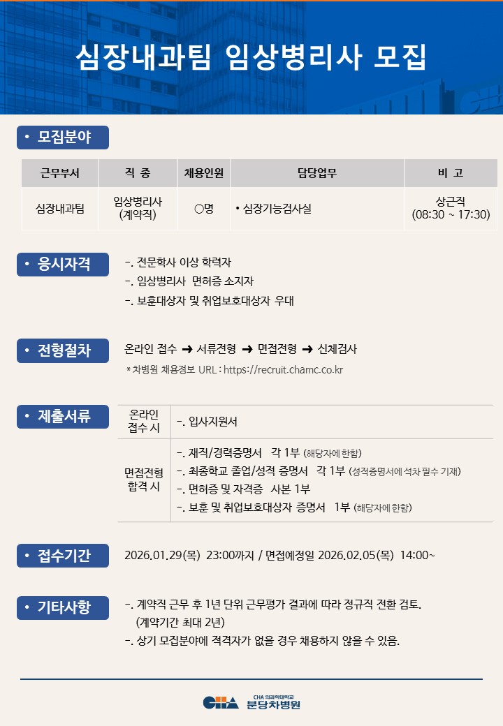 [ºÐ´çÂ÷º´¿ø] ½ÉÀå³»°úÆÀ ÀÓ»óº´¸®»ç ¸ðÁý