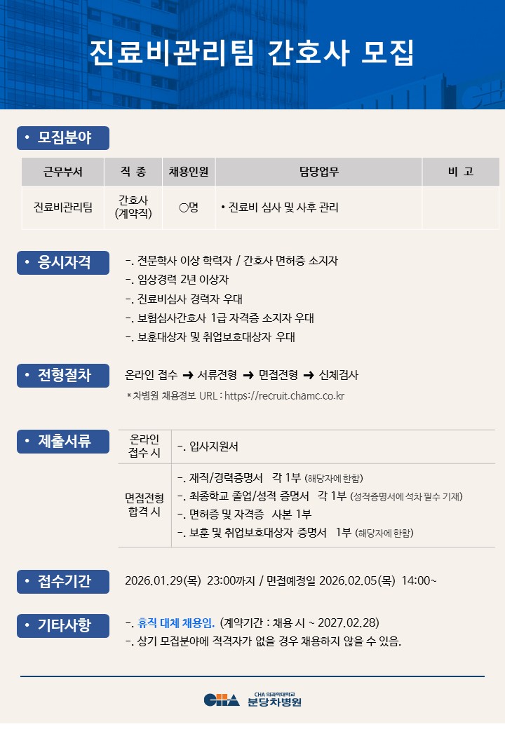 [ºÐ´çÂ÷º´¿ø] Áø·áºñ°ü¸®ÆÀ °£È£»ç ¸ðÁý