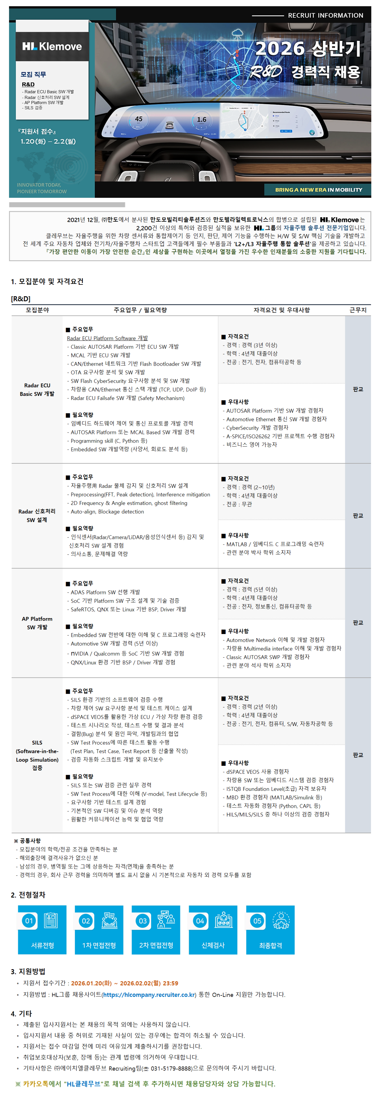 [HL Klemove] 2026 »ó¹Ý±â 2Â÷ R&D °æ·ÂÁ÷ ä¿ë
