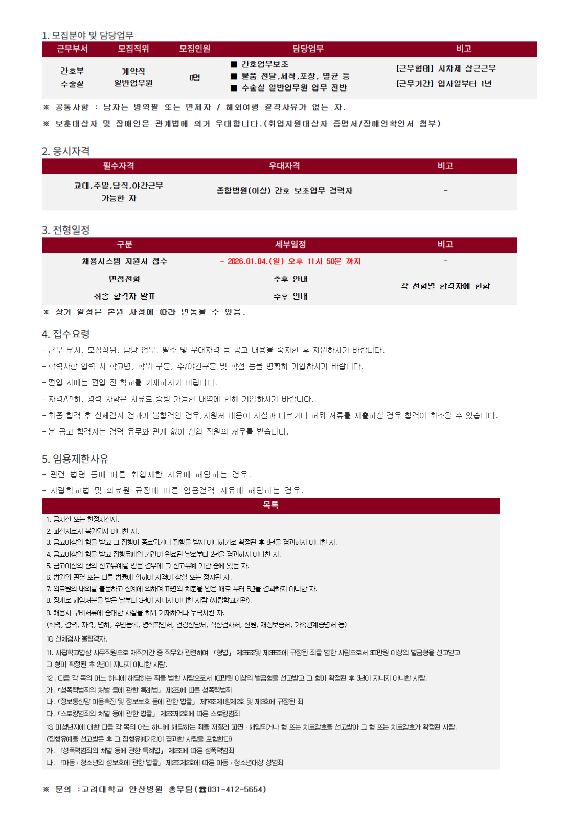 [¾È»êº´¿ø25-227] °£È£ºÎ ¼ö¼ú½Ç °è¾àÁ÷ÀϹݾ÷¹«¿ø ¸ðÁý