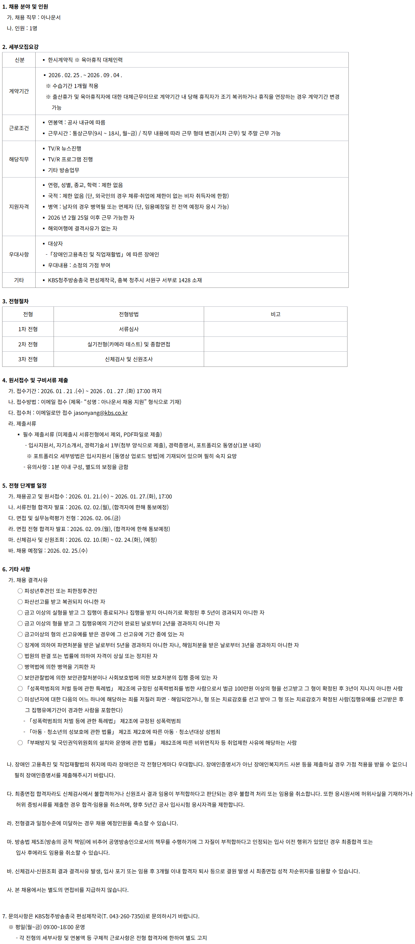 °¡. ä¿ë°ø°í ¹× ¿ø¼Á¢¼ö : 2026. 01. 21.(¼ö) ~ 2026. 01. 27.(È), 17:00