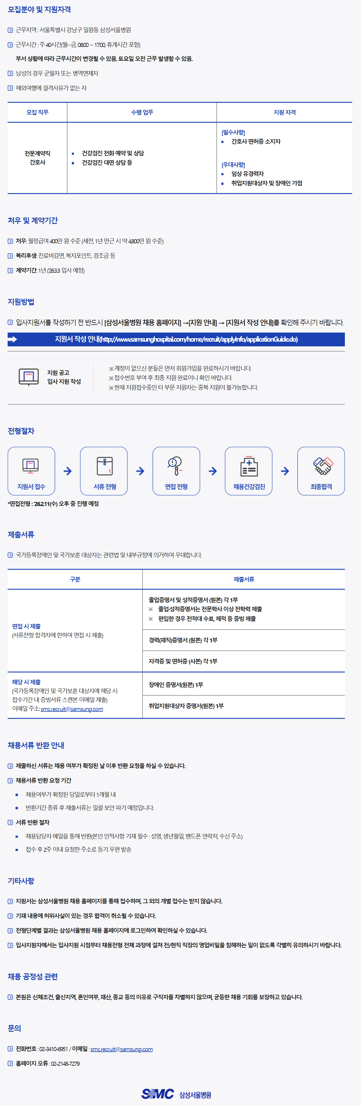 ¸ðÁý Á÷¹« ¼öÇà ¾÷¹« Áö¿ø ÀÚ°Ý Àü¹®°è¾àÁ÷ °£È£»ç °Ç°°ËÁø ÀüÈ ¿¹¾à ¹× »ó´ã °Ç°°ËÁø ´ë¸é »ó´ã µî [Çʼö»çÇ×] °£È£»ç ¸éÇãÁõ ¼ÒÁöÀÚ [¿ì´ë»çÇ×] ÀÓ»ó À¯°æ·ÂÀÚ Ãë¾÷Áö¿ø´ë»óÀÚ ¹× Àå¾ÖÀÎ °¡Á¡