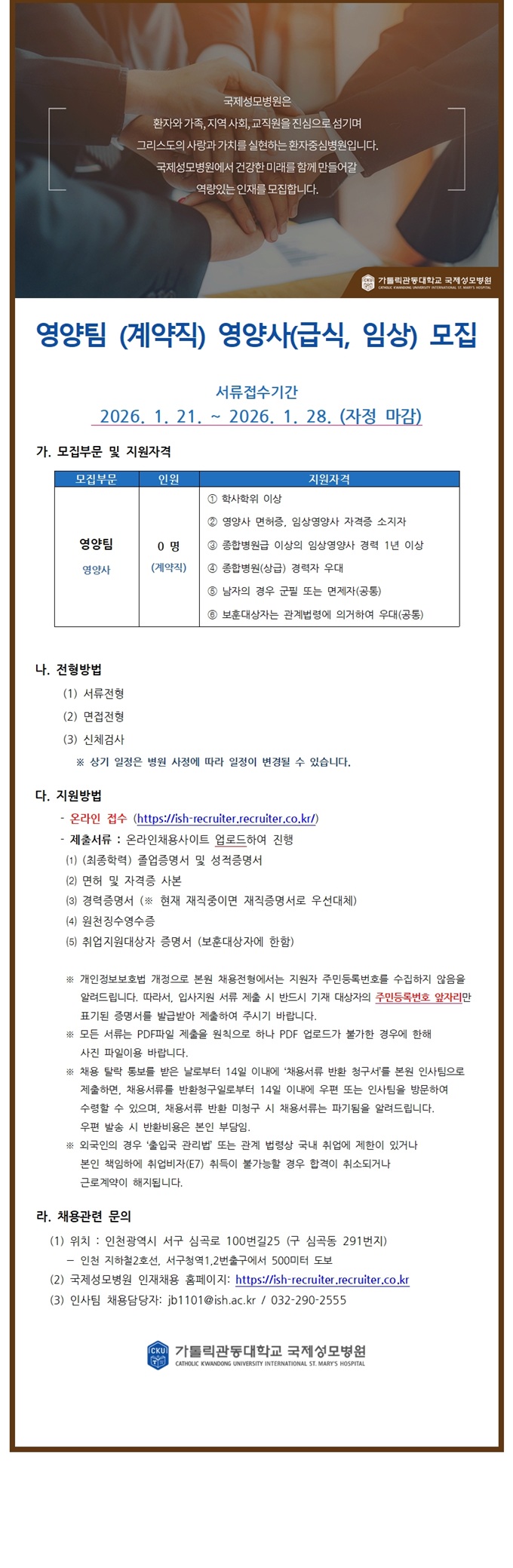 ¿µ¾çÆÀ (°è¾àÁ÷) ¿µ¾ç»ç(±Þ½Ä, ÀÓ»ó) ¸ðÁý¿¡ °üÇÑ ÀÏ