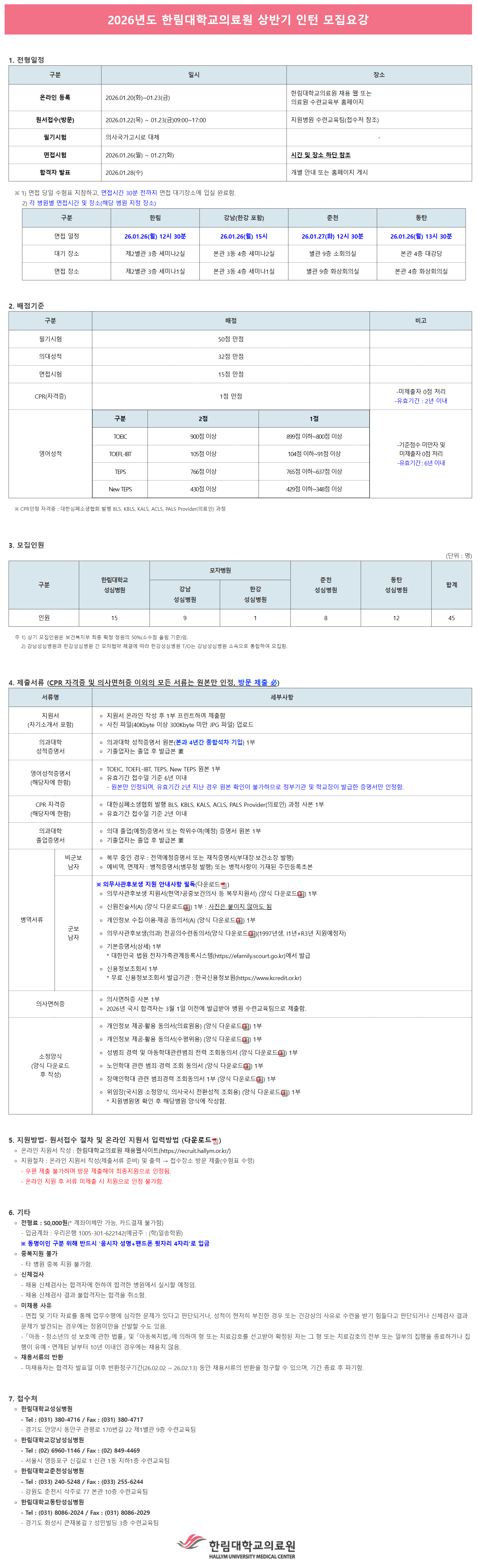 2026³âµµ ÇѸ²´ëÇб³ÀÇ·á¿ø »ó¹Ý±â ÀÎÅÏ ¸ðÁý¿ä°