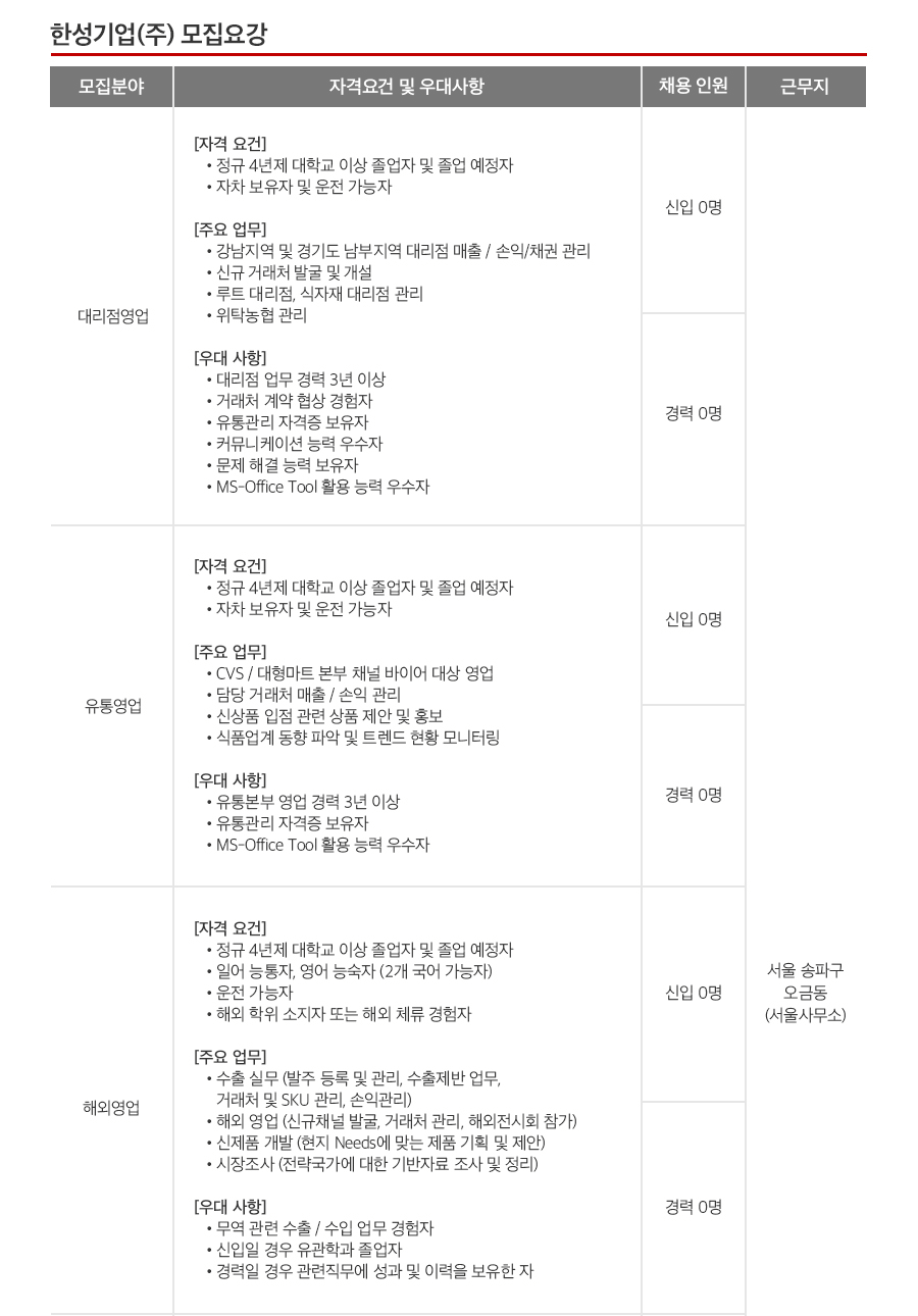 ÇѼº±â¾÷(ÁÖ) ¸ðÁý¿ä°