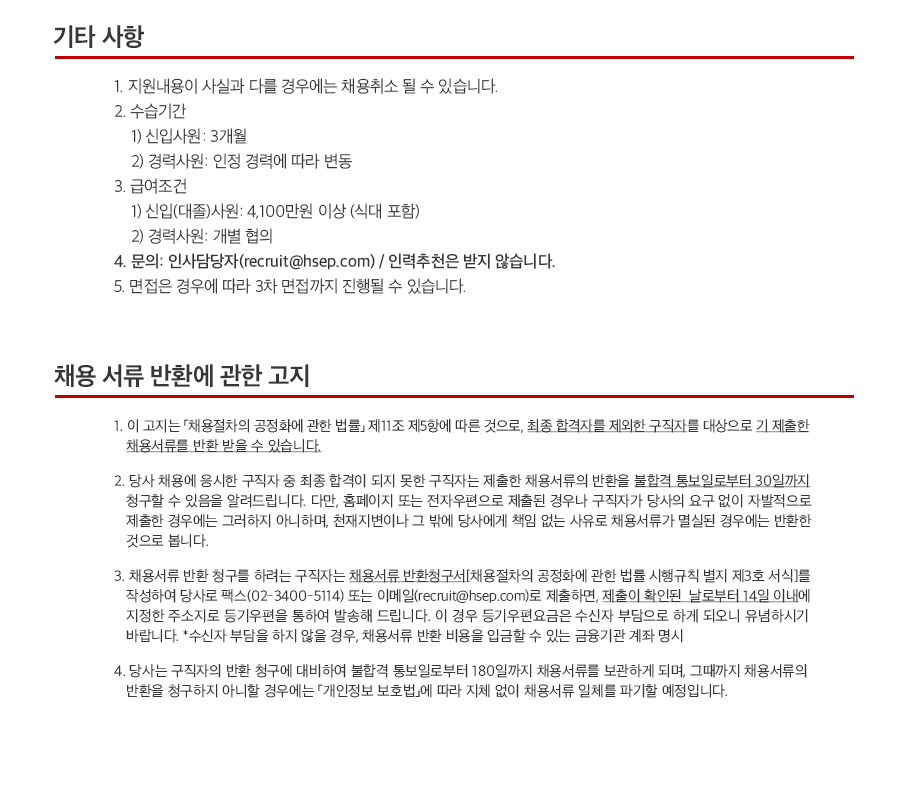 4. ¹®ÀÇ: Àλç´ã´çÀÚ(recruit@hsep.com******@*******.***) /ÀηÂÃßõÀº ¹ÞÁö¾Ê½À´Ï´Ù.