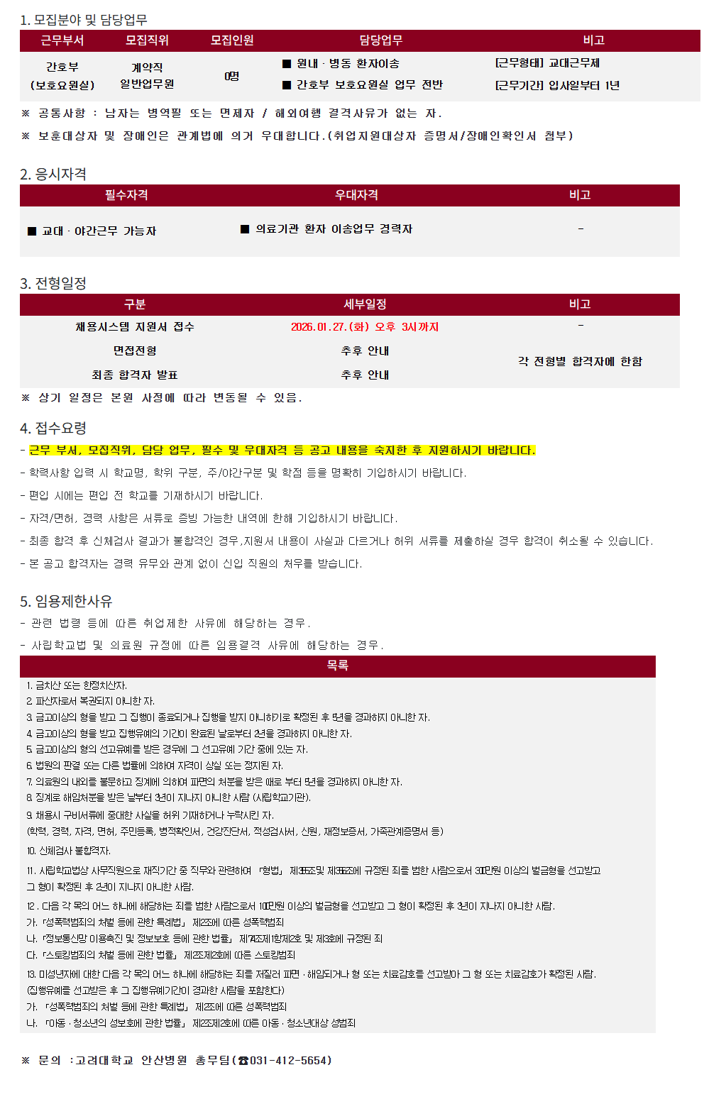 [¾È»êº´¿ø25-229] °£È£ºÎ º¸È£¿ä¿ø½Ç ȯÀÚÀÌ¼Û °è¾àÁ÷ÀϹݾ÷¹«¿ø ¸ðÁý