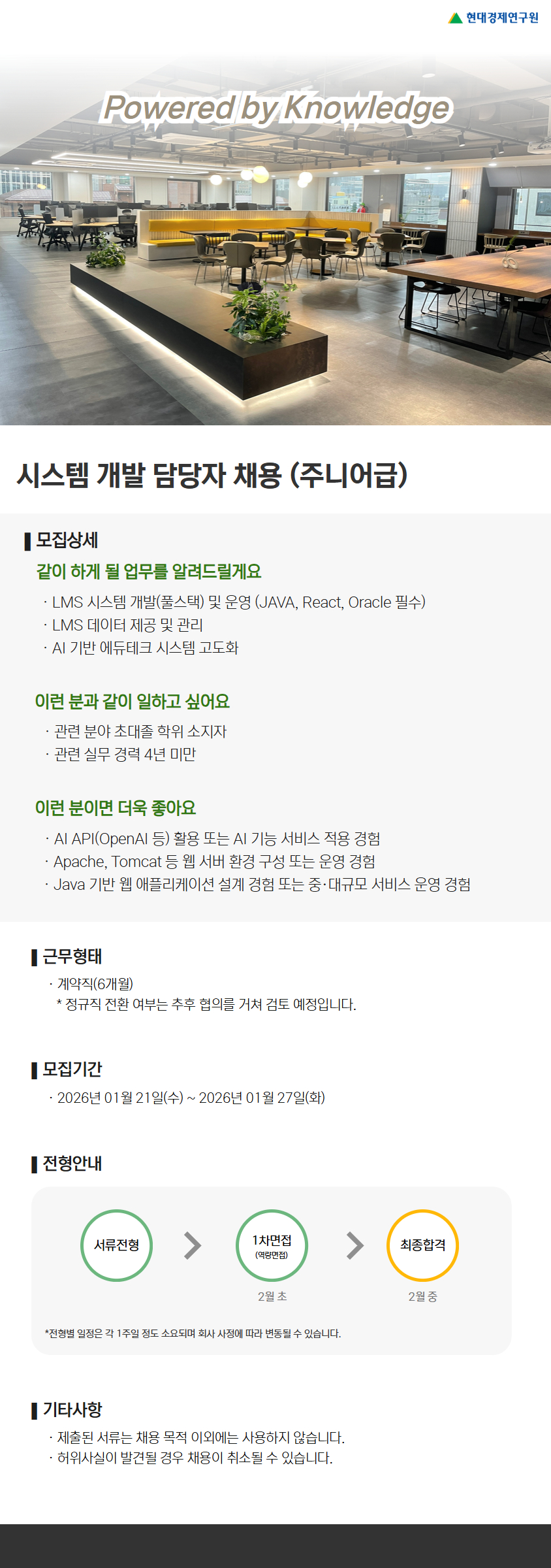[Çö´ë°æÁ¦¿¬±¸¿ø] ½Ã½ºÅÛ °³¹ß ´ã´çÀÚ Ã¤¿ë (ÁִϾî±Þ)