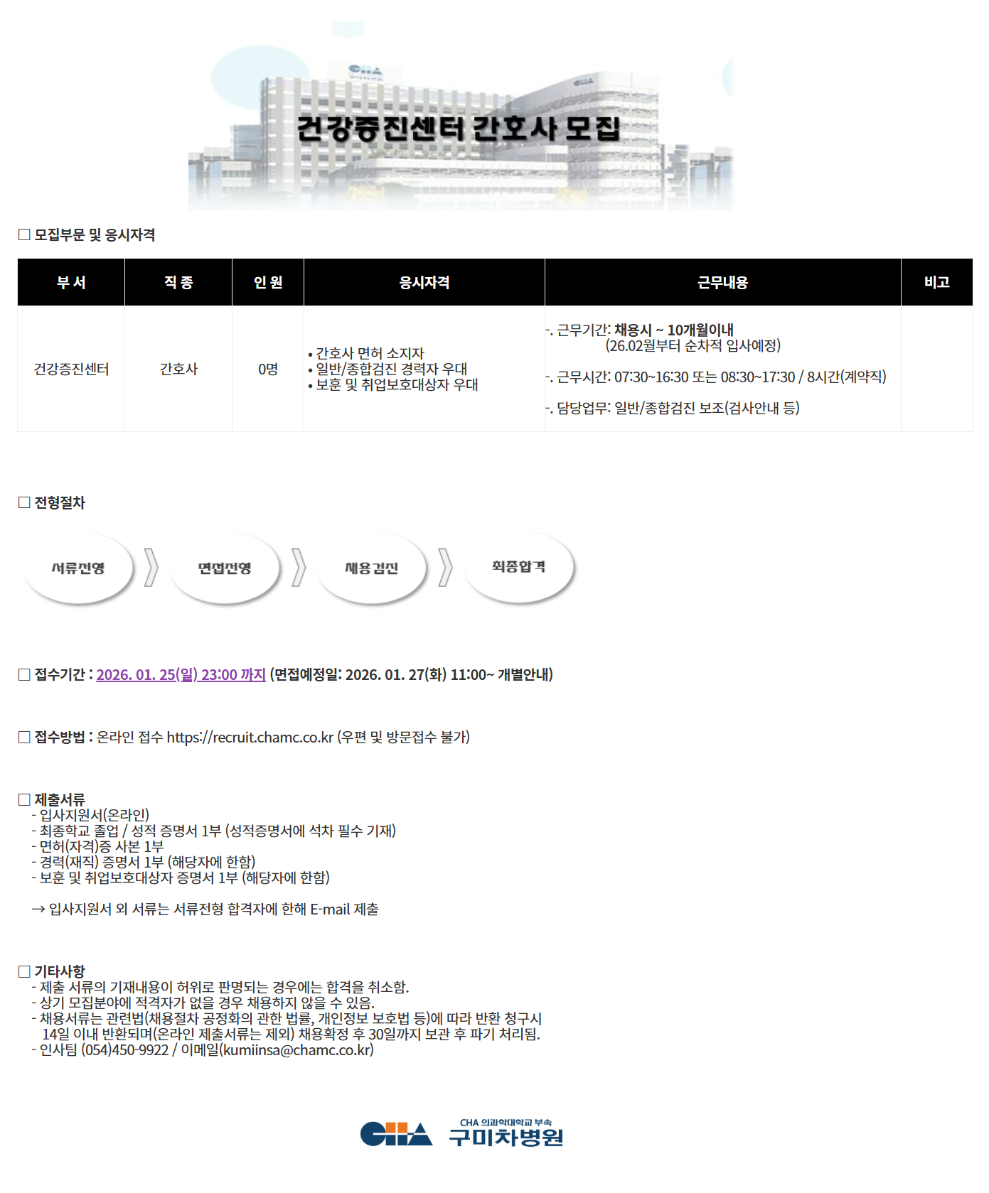 [±¸¹ÌÂ÷º´¿ø] °Ç°ÁõÁø¼¾ÅÍ °£È£»ç ¸ðÁý(±â°£Á¦)