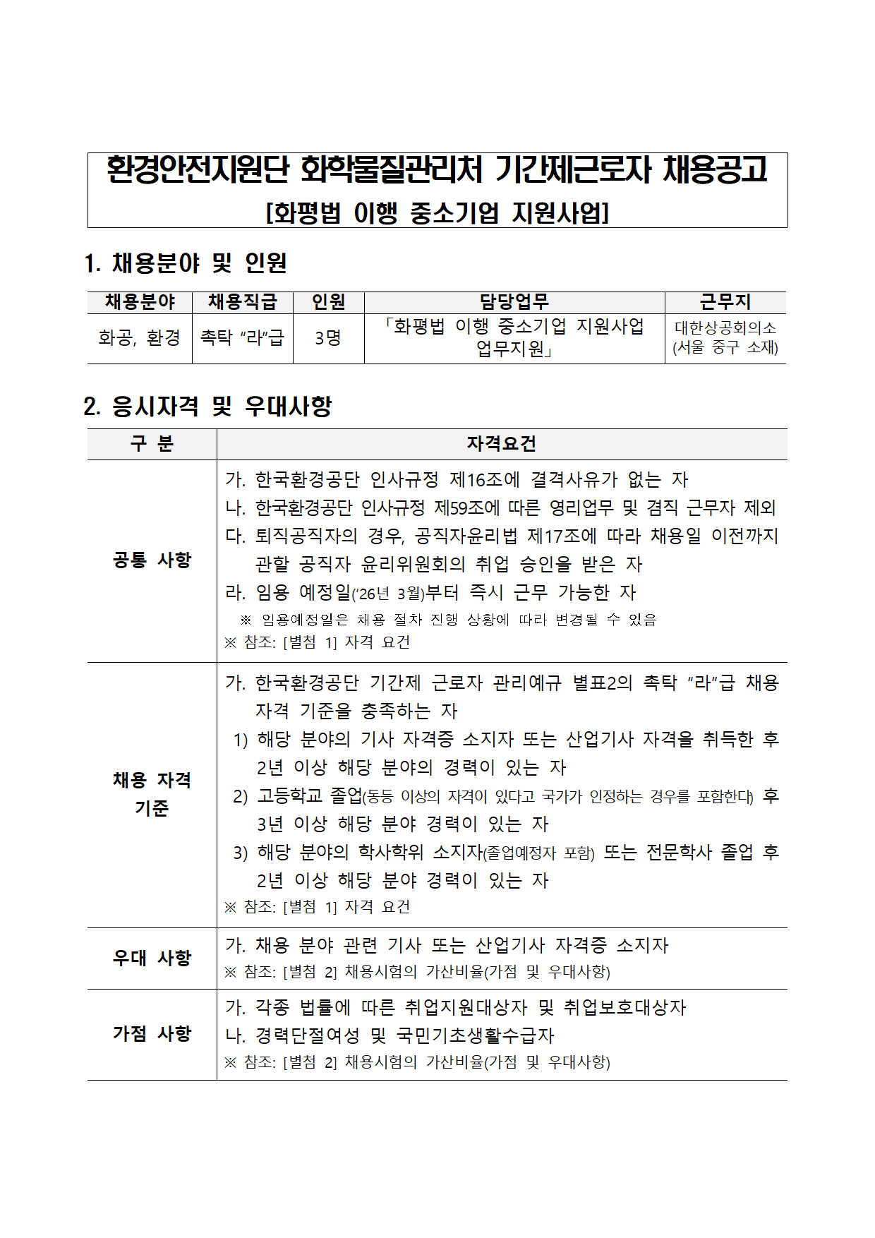 2026³â Çѱ¹È¯°æ°ø´Ü ÈÇй°Áú°ü¸®Ã³ ÈÆò¹ý ÀÌÇà Áß¼Ò±â¾÷ Áö¿ø»ç¾÷ ±â°£Á¦±Ù·ÎÀÚ(ÃËŹ¶ó±Þ) ä¿ë°ø°í