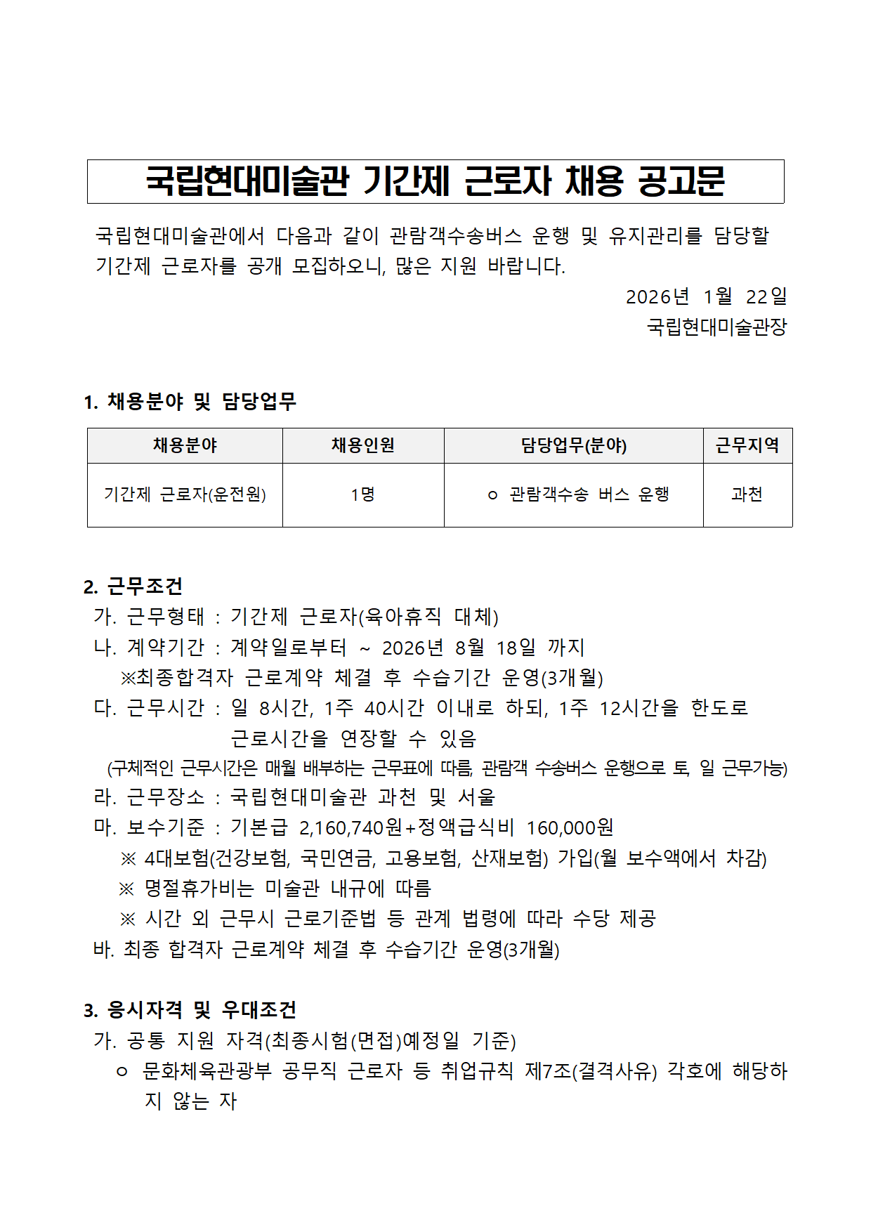 ±¹¸³Çö´ë¹Ì¼ú°ü ±â°£Á¦ ±Ù·ÎÀÚ(¿îÀü¿ø) ä¿ë °ø°í