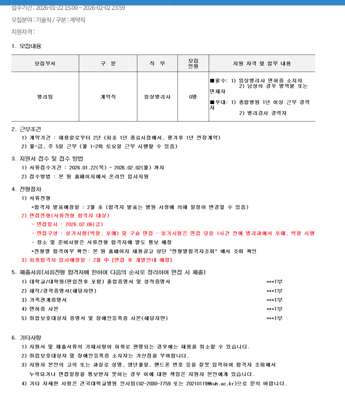 ¸ðÁýºÎ¼ ±¸ ºÐ Á÷ ¹« ¸ðÁý Àοø Áö¿ø ÀÚ°Ý ¹× ¾÷¹« ³»¿ë º´¸®ÆÀ °è¾àÁ÷ ÀÓ»óº´¸®»ç 0¸í ¡áÇʼö: 1) ÀÓ»óº´¸®»ç ¸éÇãÁõ ¼ÒÁöÀÚ 2) ³²¼ºÀÇ °æ¿ì º´¿ªÇÊ ¶Ç´Â ¸éÁ¦ÀÚ ¡á¿ì´ë: 1) Á¾ÇÕº´¿ø 1³â ÀÌ»ó ±Ù¹« °æ·ÂÀÚ 2) º´¸®°Ë»ç °æ·ÂÀÚ