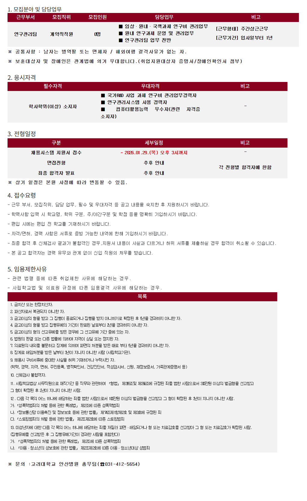 [¾È»êº´¿ø25-231] ¿¬±¸°ü¸®ÆÀ °è¾àÁ÷Á÷¿ø ¸ðÁý