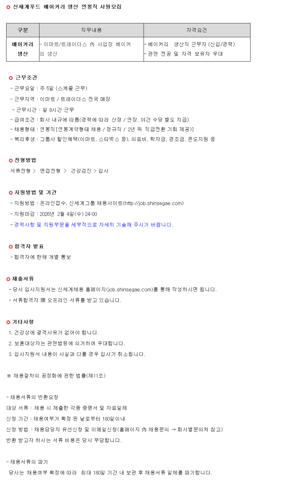 (ÁÖ)½Å¼¼°èǪµå º£ÀÌÄ¿¸® »ý»ê ¿¬ºÀÁ÷ »ç¿ø¸ðÁý