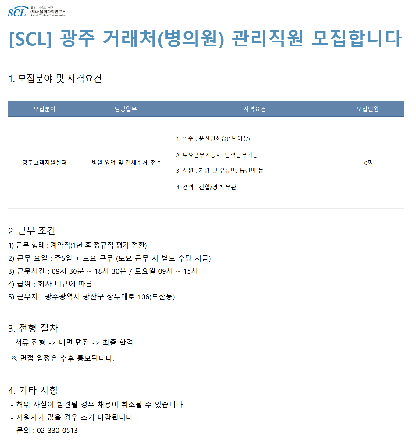 [SCL] ±¤ÁÖ °Å·¡Ã³(º´ÀÇ¿ø) °ü¸®Á÷¿ø ¸ðÁýÇÕ´Ï´Ù