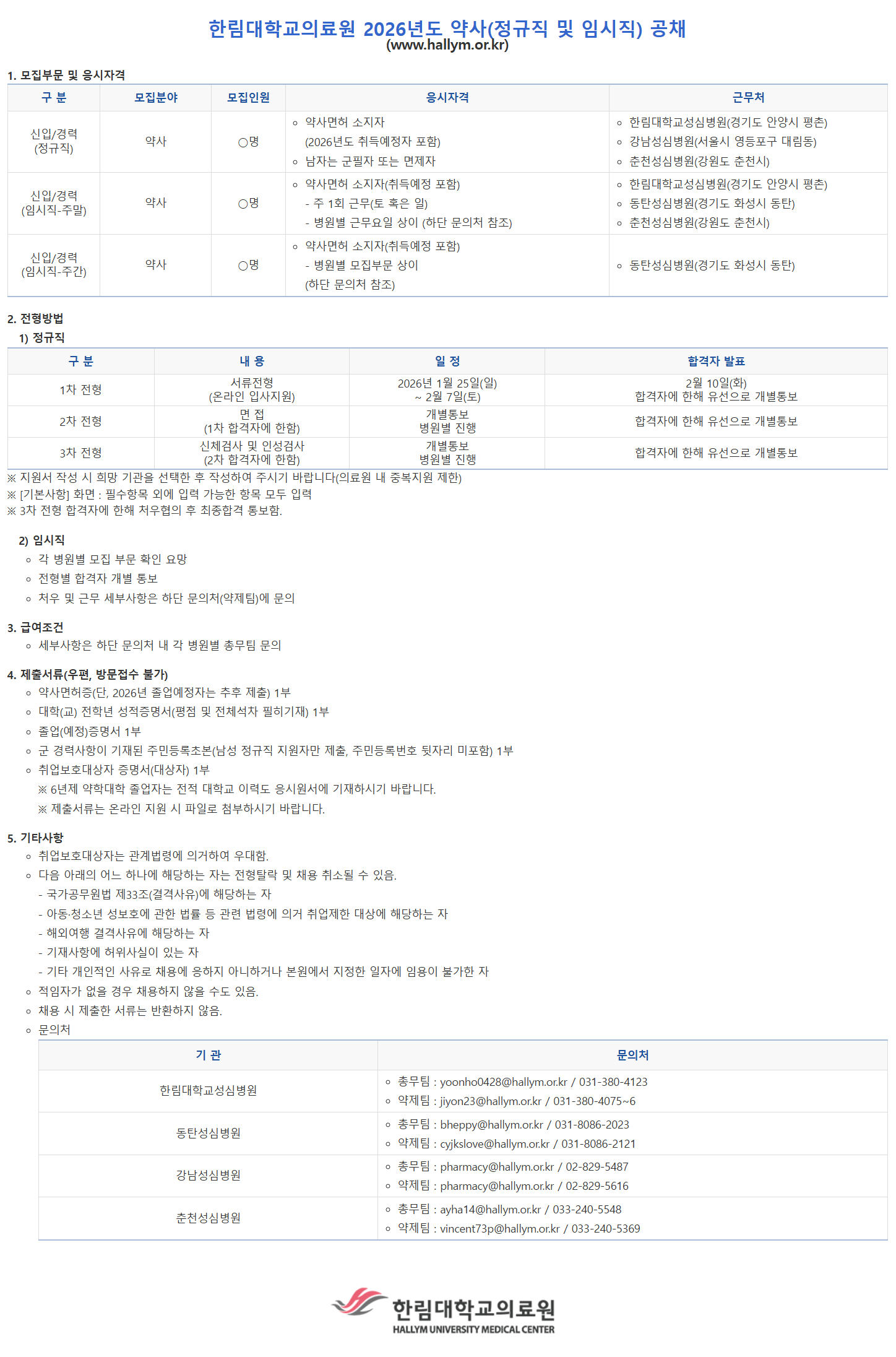 ÇѸ²´ëÇб³ÀÇ·á¿ø 2026³âµµ ¾à»ç(Á¤±ÔÁ÷ ¹× ÀÓ½ÃÁ÷) °øÃ¤