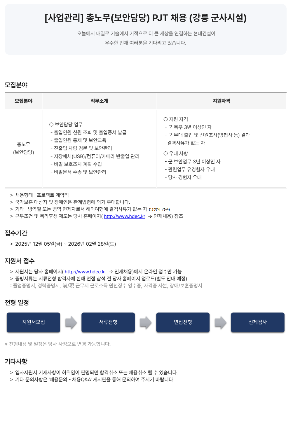 [»ç¾÷°ü¸®] Ãѳ빫(º¸¾È´ã´ç) PJT ä¿ë (°¸ª ±º»ç½Ã¼³)