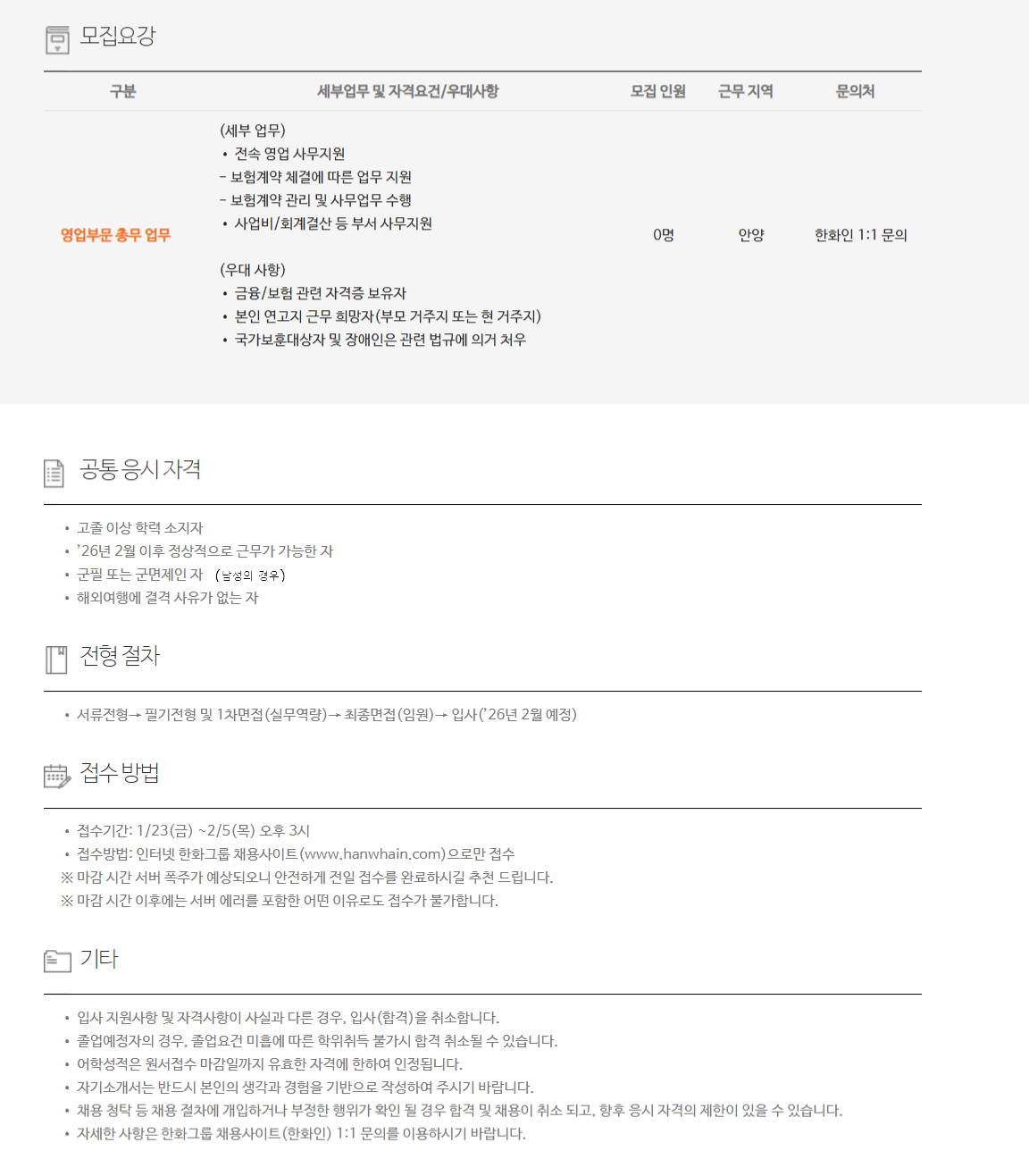 ÇÑȼÕÇØº¸Çè(ÁÖ) Á¤±ÔÁ÷ ä¿ë - ¿µ¾÷ºÎ¹® ¼¹«Á÷ ä¿ë(¾È¾ç)