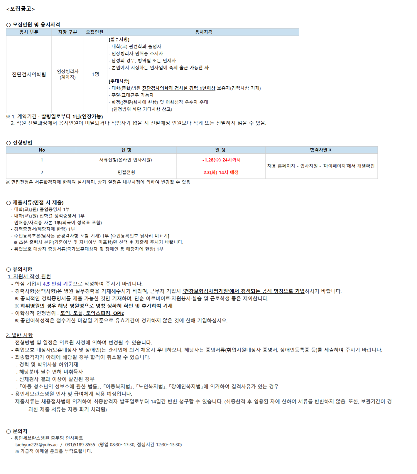 [¿ëÀÎ] Áø´Ü°Ë»çÀÇÇÐÆÀ ÀÓ»óº´¸®»ç(°è¾àÁ÷) ½Å±Ôä¿ë 26.1