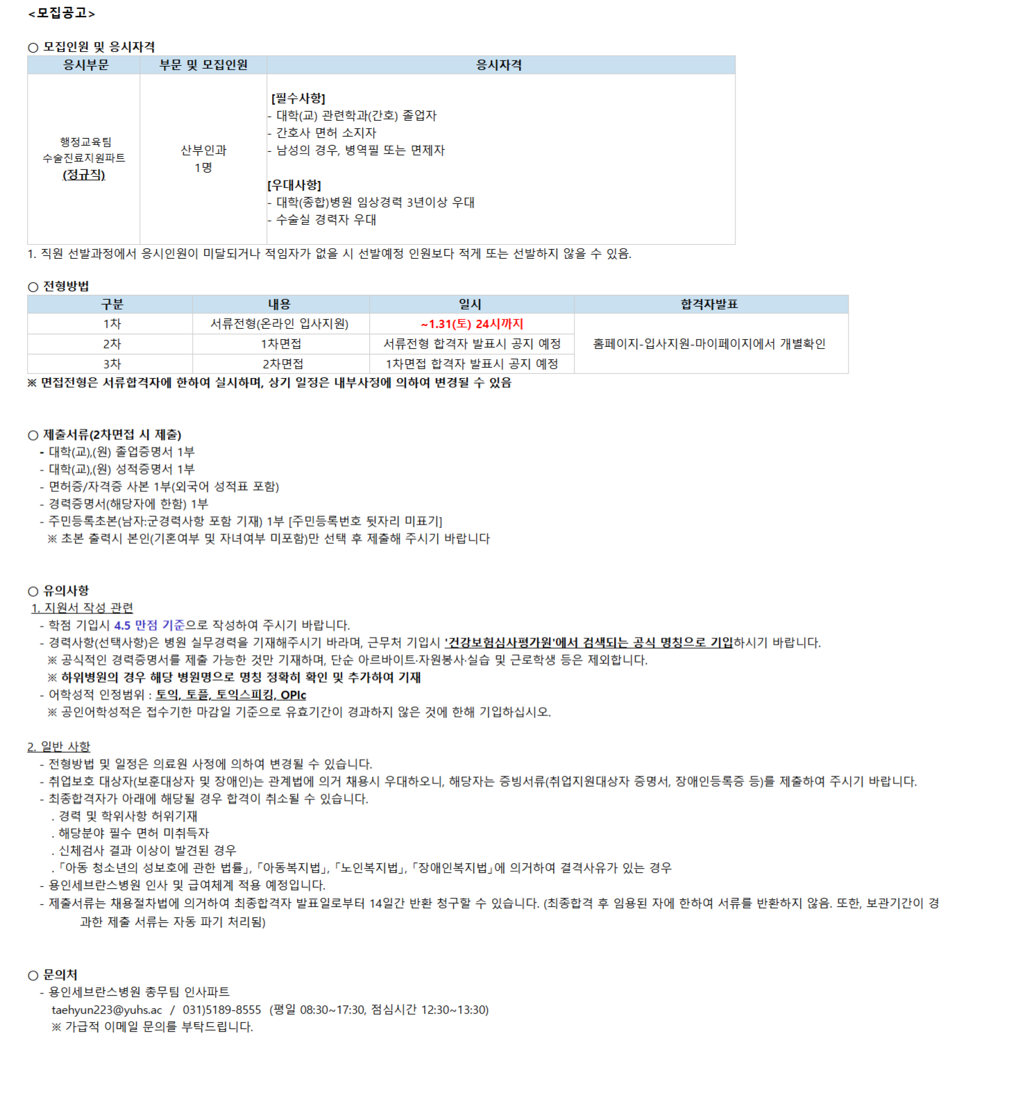 [¿ëÀÎ] ÇàÁ¤±³À°ÆÀ ¼ö¼úÁø·áÁö¿øÆÄÆ®(»êºÎÀΰú) °£È£»ç(Á¤±ÔÁ÷) ½Å±Ôä¿ë 26.1