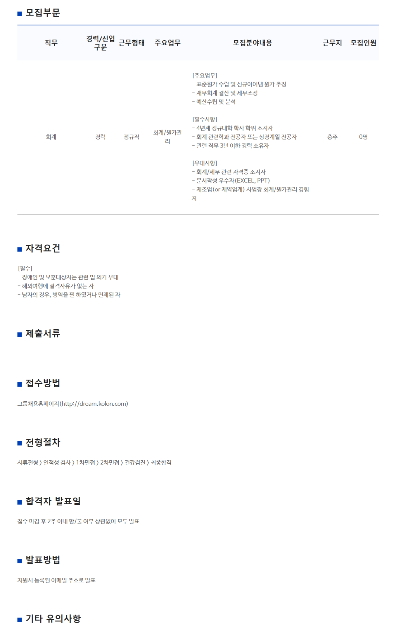 [ÄÚ¿À·Õ»ý¸í°úÇÐ(ÁÖ)] ÃæÁÖ°øÀå ȸ°è °æ·Â ä¿ë
