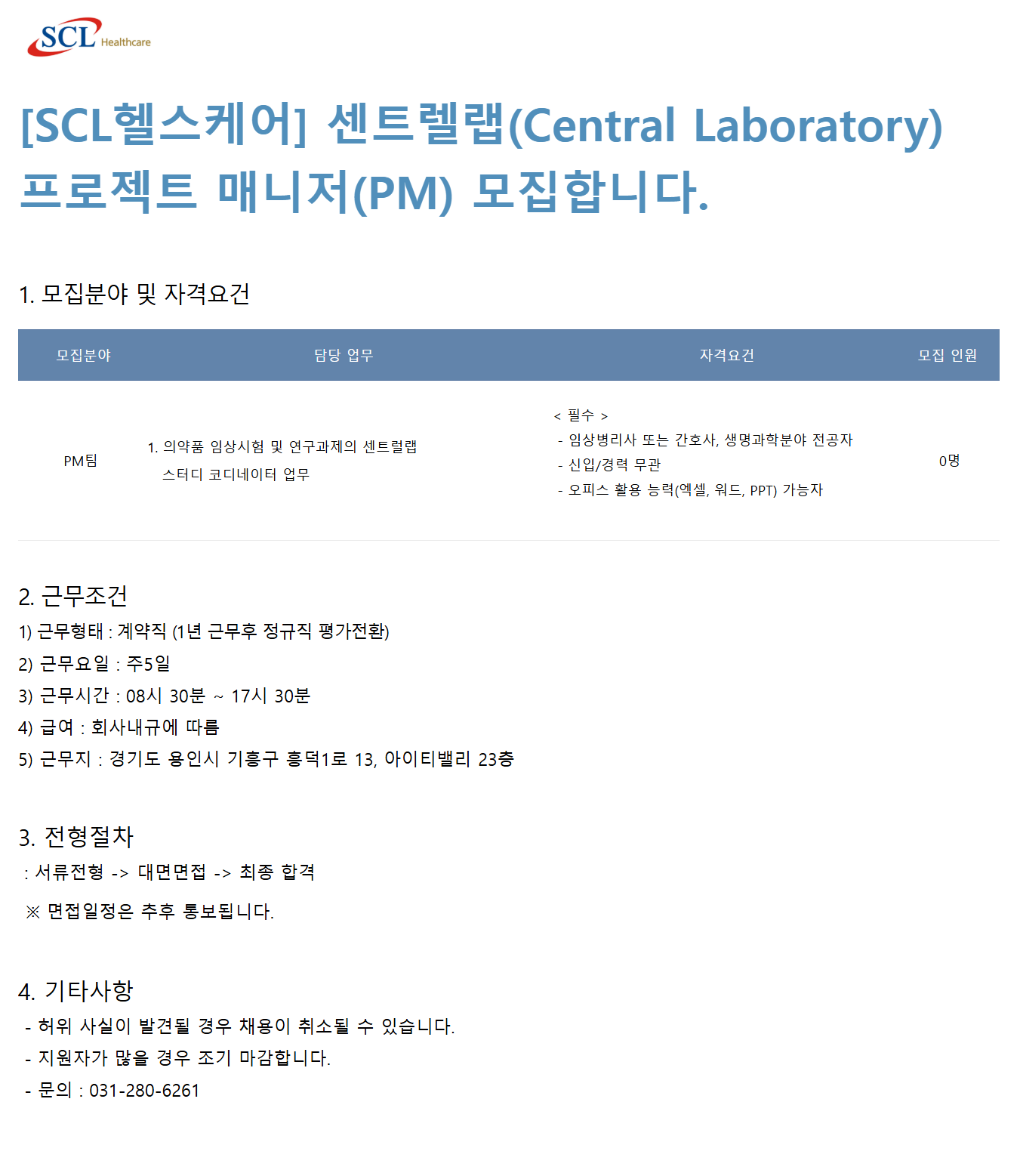 [SCLÇコÄɾî] ¼¾Æ®·¼·¦(Central Laboratory) ÇÁ·ÎÁ§Æ® ¸Å´ÏÀú(PM) ¸ðÁýÇÕ´Ï´Ù.
