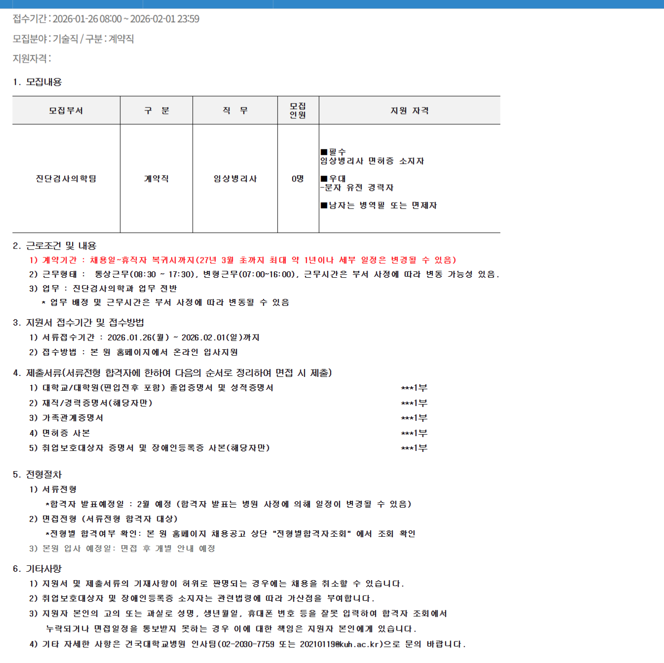 ¸ðÁýºÎ¼ ±¸ ºÐ Á÷ ¹« ¸ðÁý Àοø Áö¿ø ÀÚ°Ý Áø´Ü°Ë»çÀÇÇÐÆÀ °è¾àÁ÷ ÀÓ»óº´¸®»ç 0¸í ¡áÇʼö ÀÓ»óº´¸®»ç ¸éÇãÁõ ¼ÒÁöÀÚ ¡á¿ì´ë -ºÐÀÚ À¯Àü °æ·ÂÀÚ ¡á³²ÀÚ´Â º´¿ªÇÊ ¶Ç´Â ¸éÁ¦ÀÚ
