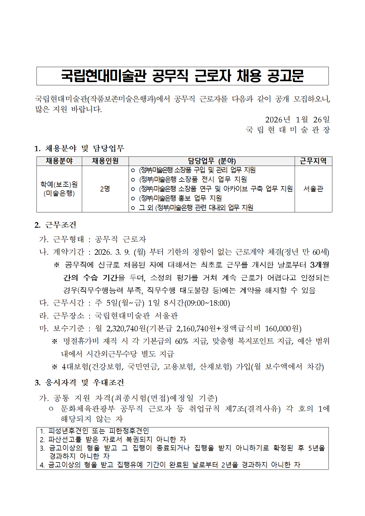 ±¹¸³Çö´ë¹Ì¼ú°ü °ø¹«Á÷ ±Ù·ÎÀÚ(¹Ì¼úÀºÇà) ä¿ë °ø°í