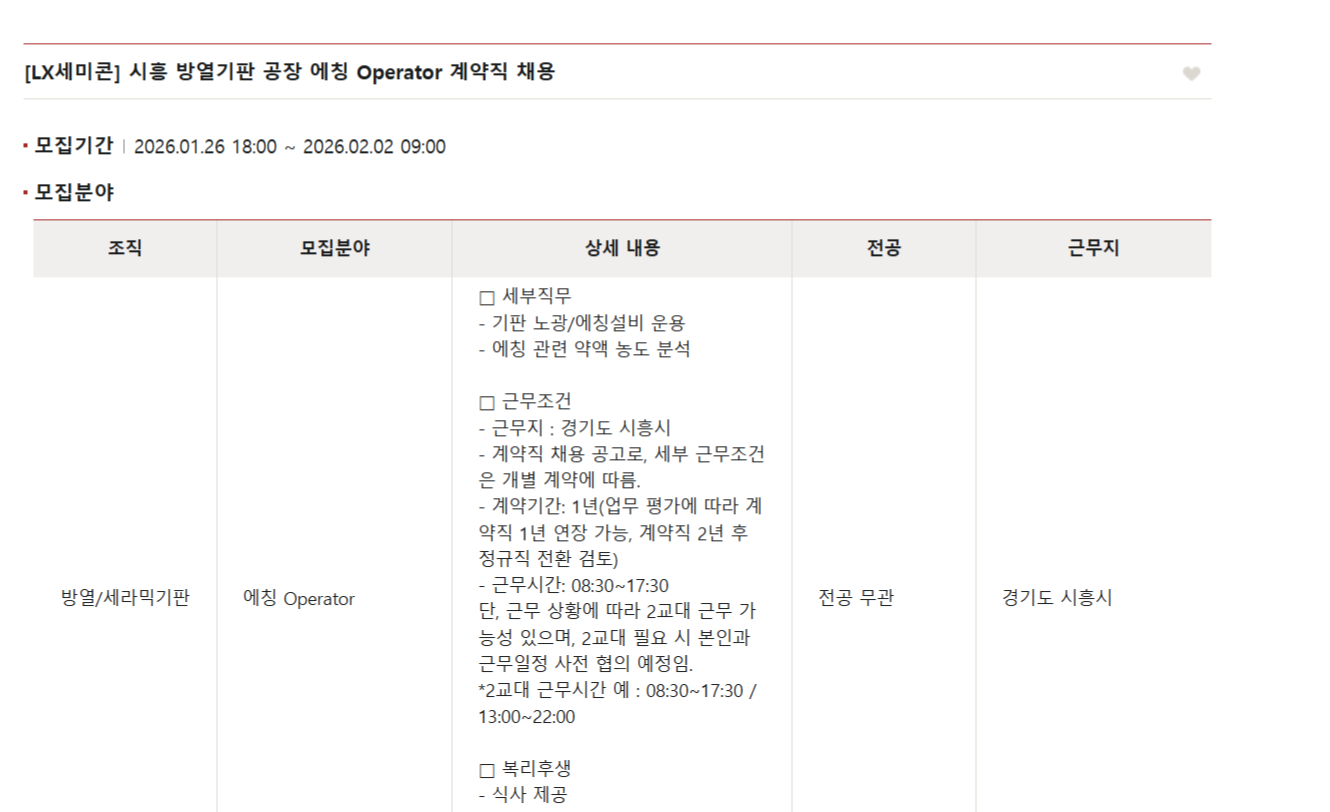 - °è¾à±â°£: 1³â(¾÷¹« Æò°¡¿¡ µû¶ó °è¾àÁ÷ 1³â ¿¬Àå °¡´É, °è¾àÁ÷ 2³â ÈÄ Á¤±ÔÁ÷ Àüȯ °ËÅä)