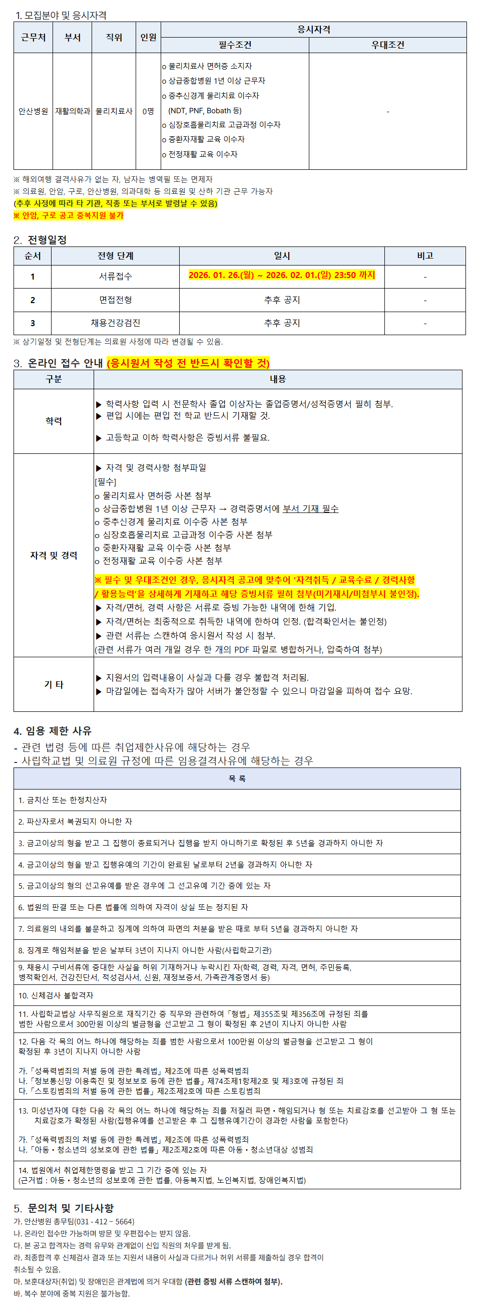 [¾È»êº´¿ø Á¤±ÔÁ÷ 25-38] ÀçȰÀÇÇаú ¹°¸®Ä¡·á»ç ½Å±Ô±³Á÷¿ø ¸ðÁý
