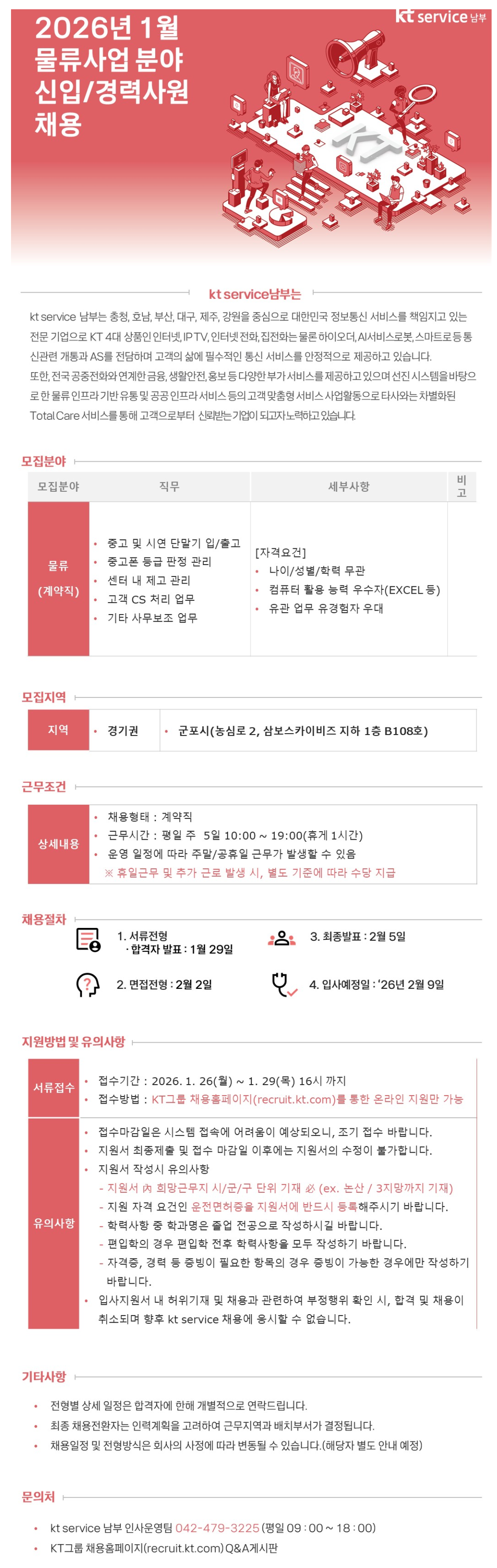 [kt service³²ºÎ] '26³â 1¿ù ½ÅÀÔ/°æ·Â»ç¿ø ä¿ë