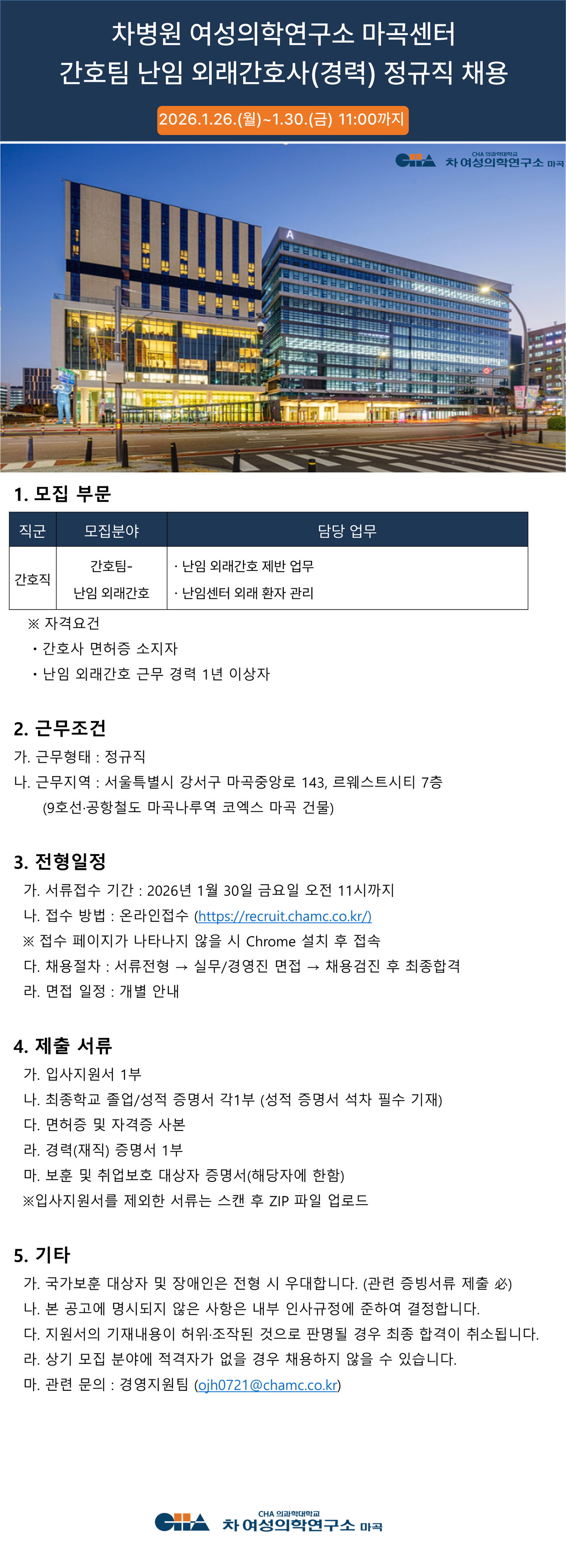 [Â÷¿©¼ºÀÇÇבּ¸¼Ò ¸¶°î] Â÷º´¿ø ¸¶°î¼¾ÅÍ, °£È£ÆÀ ³ÀÓ ¿Ü·¡°£È£»ç(°æ·Â) Á¤±ÔÁ÷ ä¿ë
