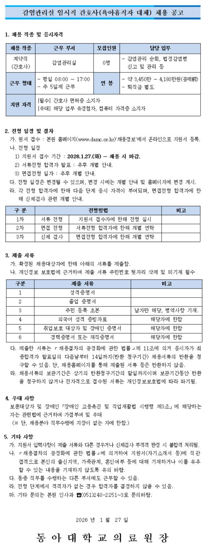 °¨¿°°ü¸®½Ç ÀÓ½ÃÁ÷ °£È£»ç ä¿ë °ø°í