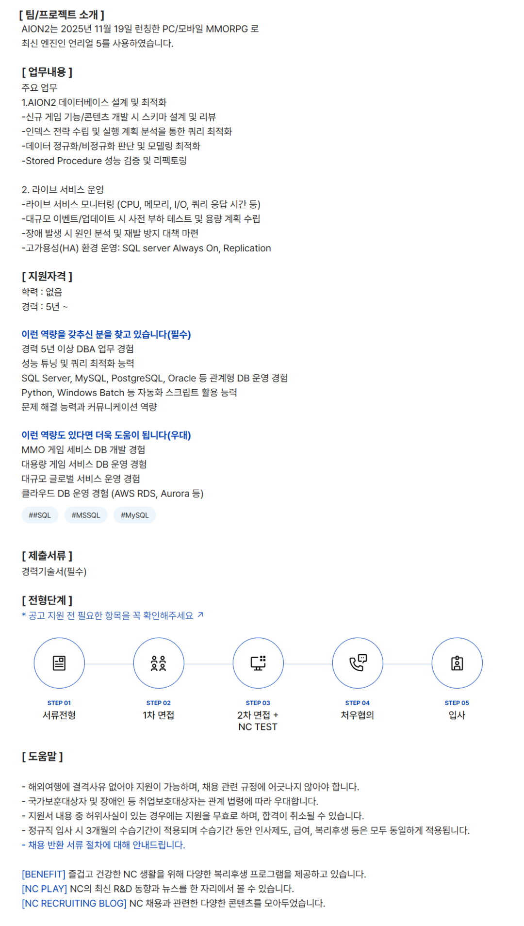 1.AION2 µ¥ÀÌÅͺ£À̽º ¼³°è ¹× ÃÖÀûÈ