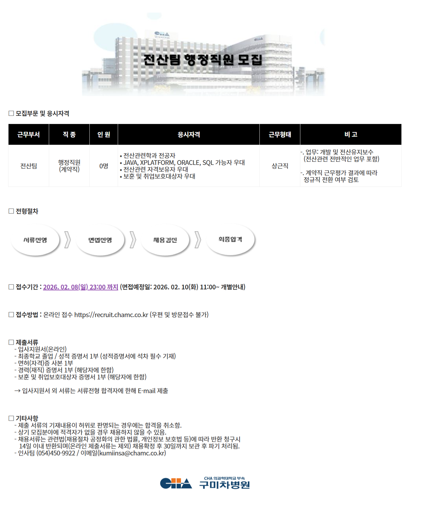 [±¸¹ÌÂ÷º´¿ø] Àü»êÆÀ ÇàÁ¤Á÷¿ø ¸ðÁý(°è¾àÁ÷)