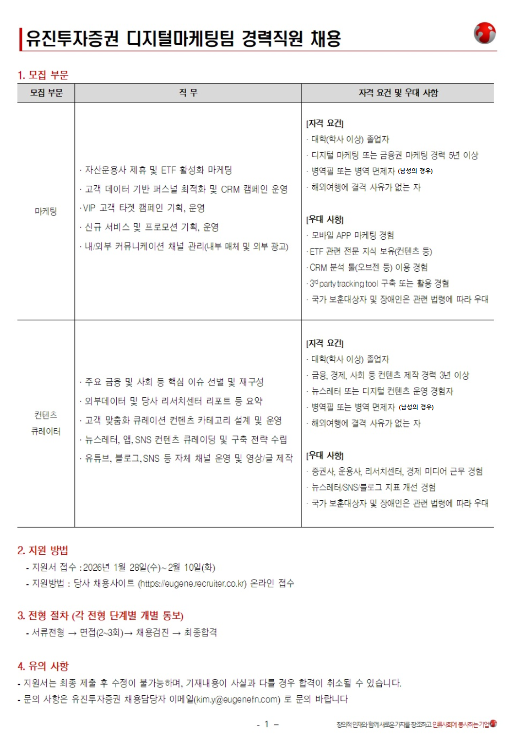 [À¯ÁøÅõÀÚÁõ±Ç] µðÁöÅи¶ÄÉÆÃÆÀ °æ·ÂÁ÷¿ø ä¿ë