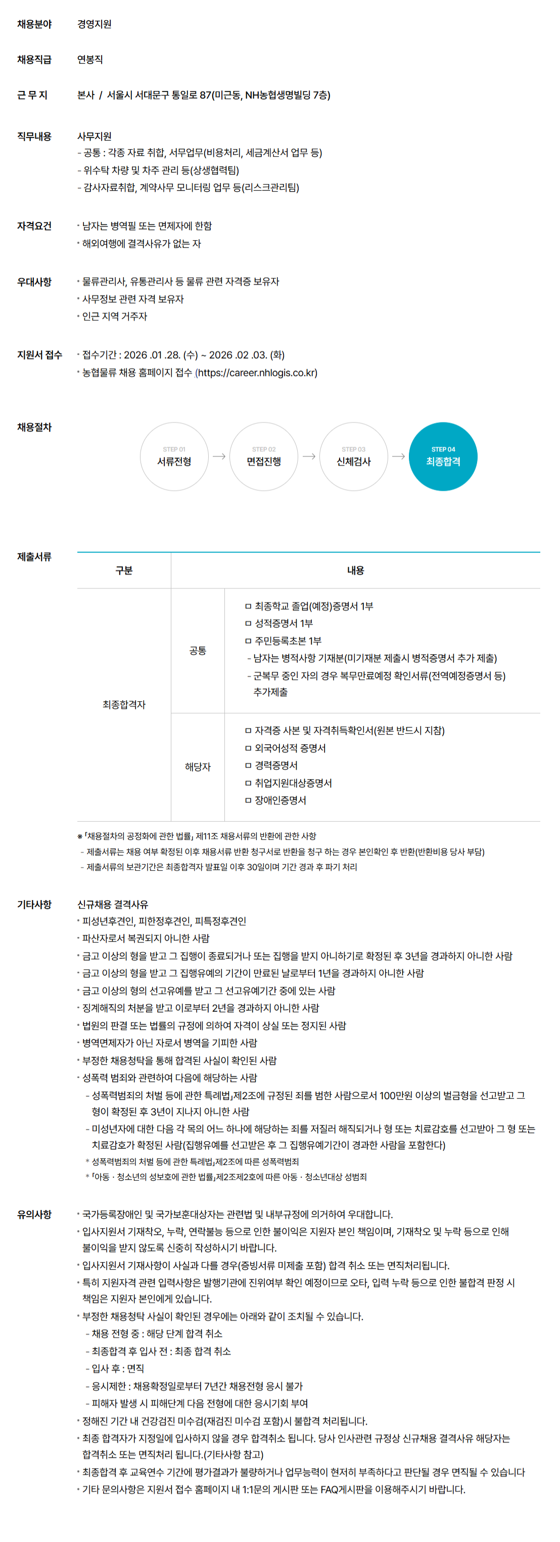 ³óÇù¹°·ù ä¿ë ȨÆäÀÌÁö Á¢¼ö (https://career.nhlogis.co.kr)