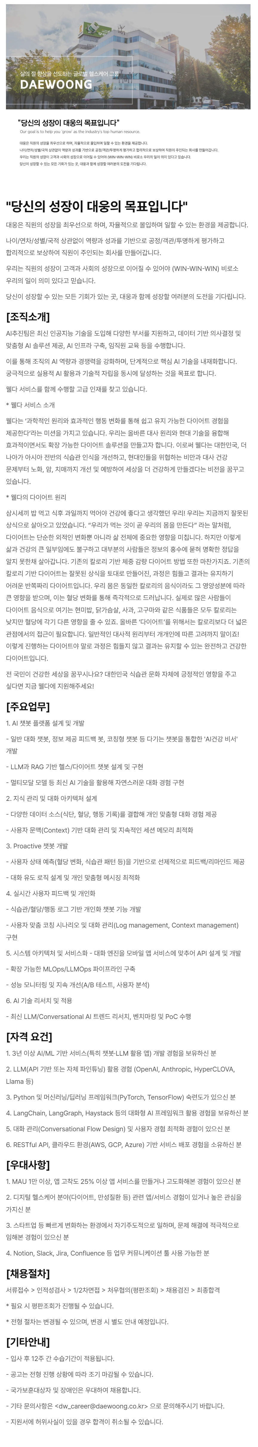 À̸¦ ÅëÇØ Á¶Á÷ÀÇ AI ¿ª·®°ú °æÀï·ÂÀ» °ÈÇϸç, ´Ü°èÀûÀ¸·Î ÇÙ½É AI ±â¼úÀ» ³»ÀçÈÇÕ´Ï´Ù. ±Ã±ØÀûÀ¸·Î ½Ç¿ëÀû AI Ȱ¿ë°ú ±â¼úÀû ÀÚ¸³À» µ¿½Ã¿¡ ´Þ¼ºÇÏ´Â °ÍÀ» ¸ñÇ¥·Î ÇÕ´Ï´Ù.