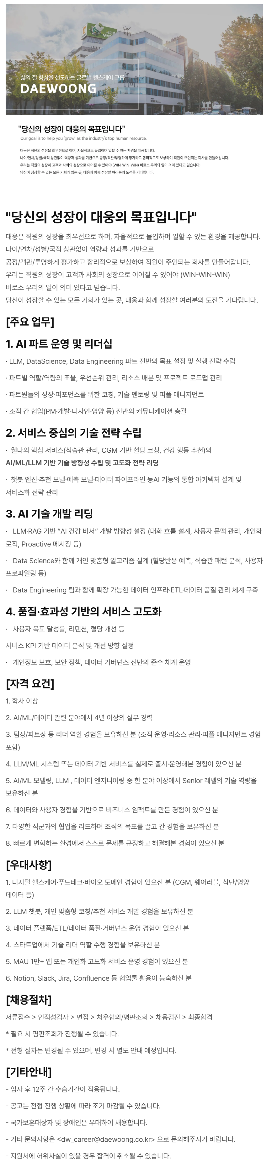 - ±âŸ ¹®ÀÇ»çÇ×Àº <dw_career@daewoong.co.kr******@*******.***> À¸·Î ¹®ÀÇÇØÁֽñ⠹ٶø´Ï´Ù.
