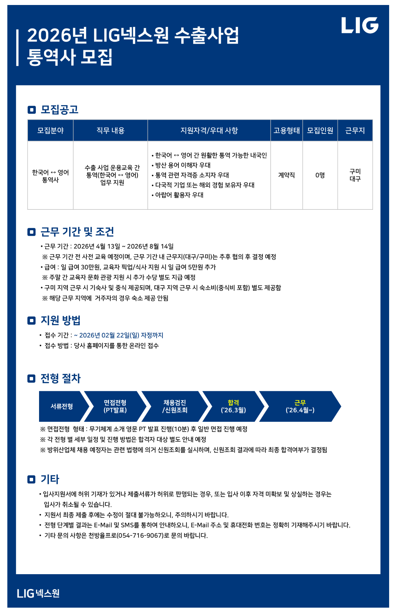 [LIG³Ø½º¿ø] '26³â »ó¹Ý±â ¼öÃâ»ç¾÷ Å뿪»ç ä¿ë °ø°í