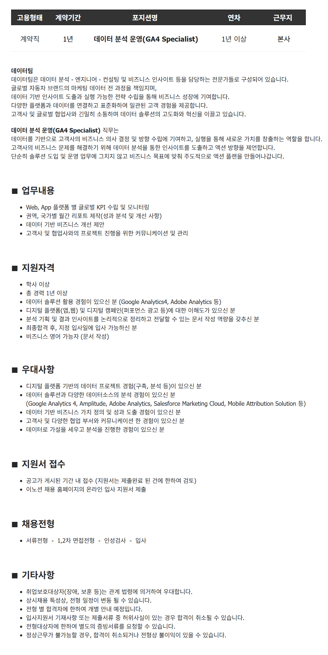 µ¥ÀÌÅÍ ºÐ¼® ¿î¿µ(GA4 Specialist)